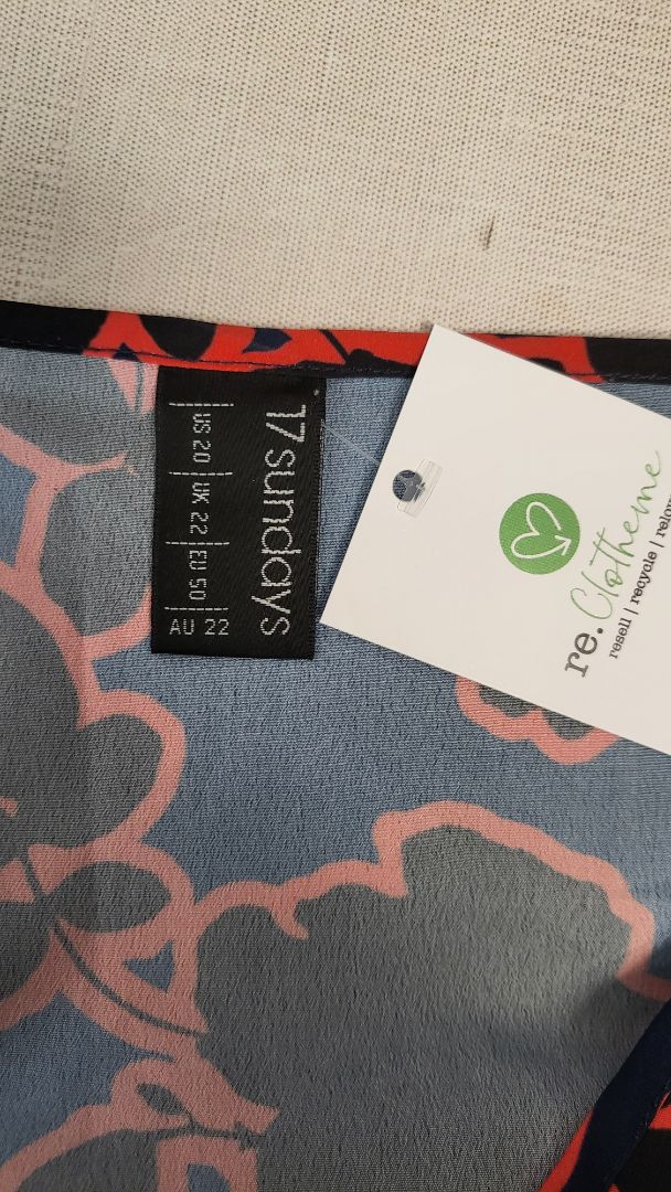 Gathered ties on the shoulders, crossover bustline with side pockets, knee length.