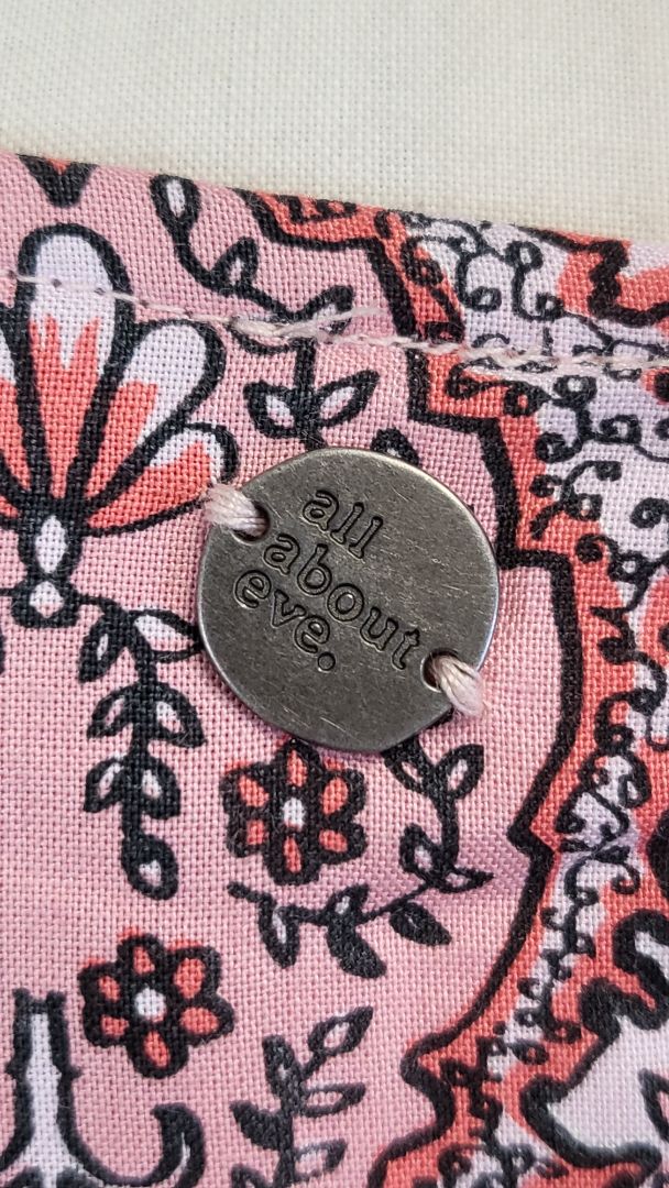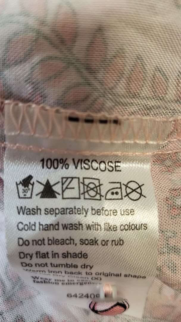 Slip on and go little viscose dress. Pale pink background with pattern, v neck and short sleeve.