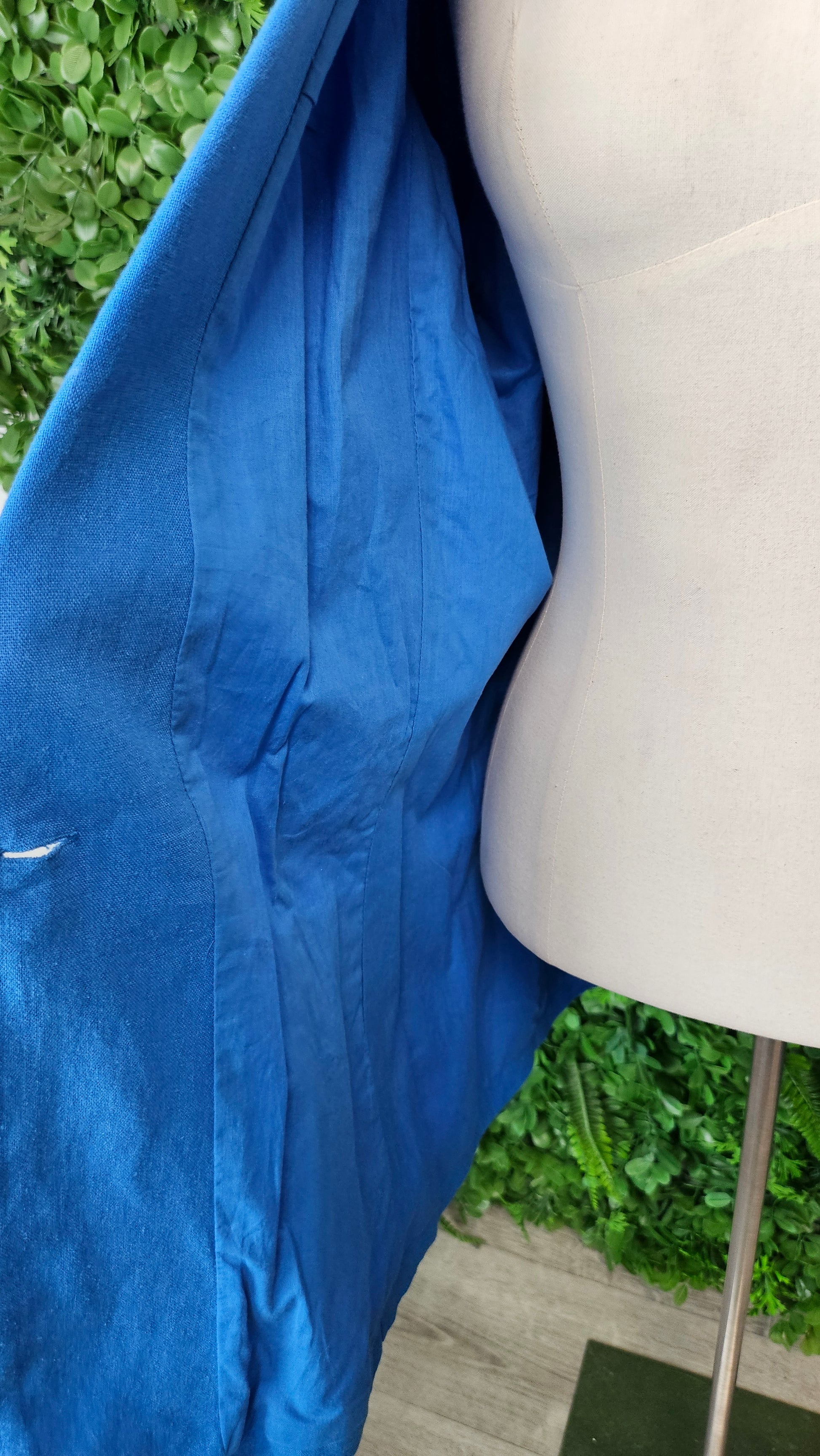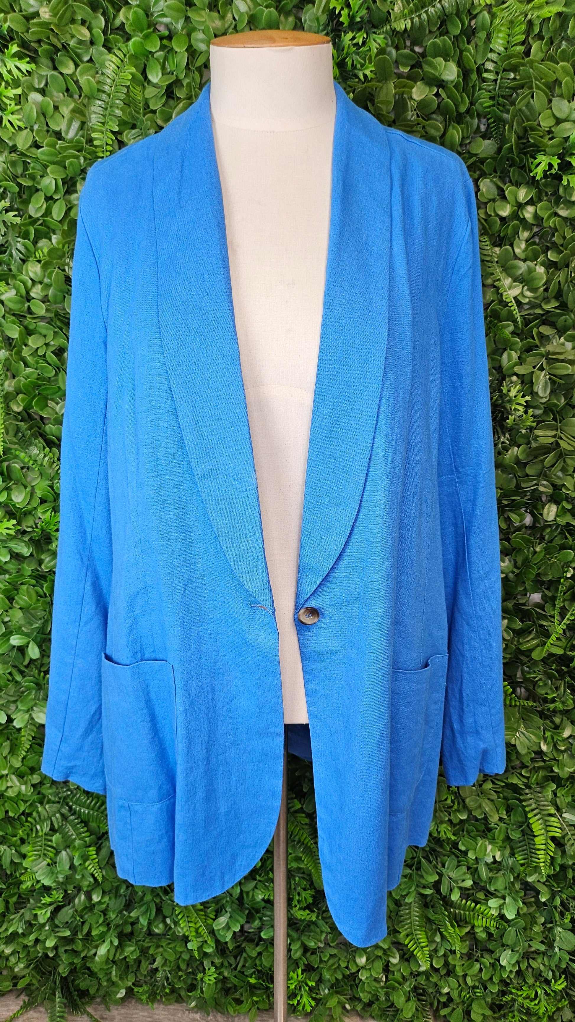 Lovely blue linen blazer, fully lined. Single button closure, pockets