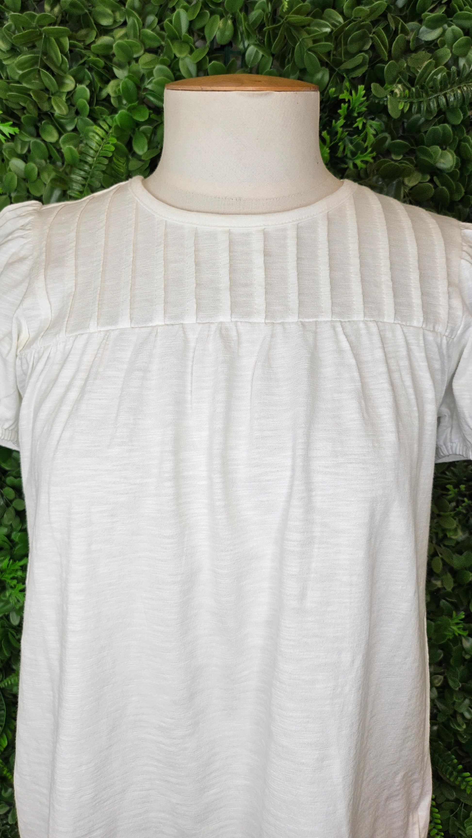 With puffed sleeves and a pleated panel adding subtle shape and detail, this soft cotton blouse can be paired with just about anything. Whether you’re running errands in bell-bottom jeans or grabbing coffee in culottes, this blouse is the perfect pairing. New