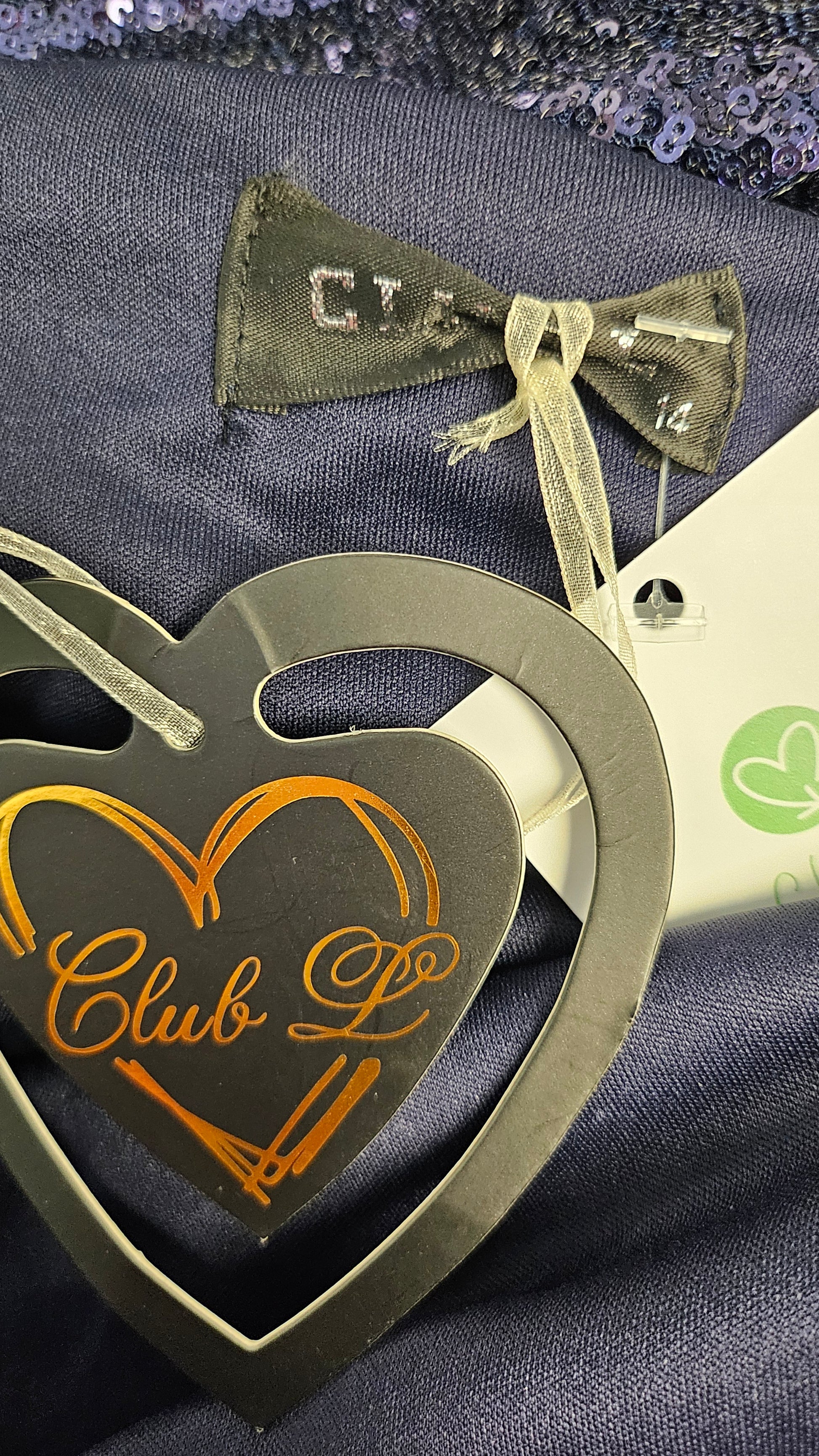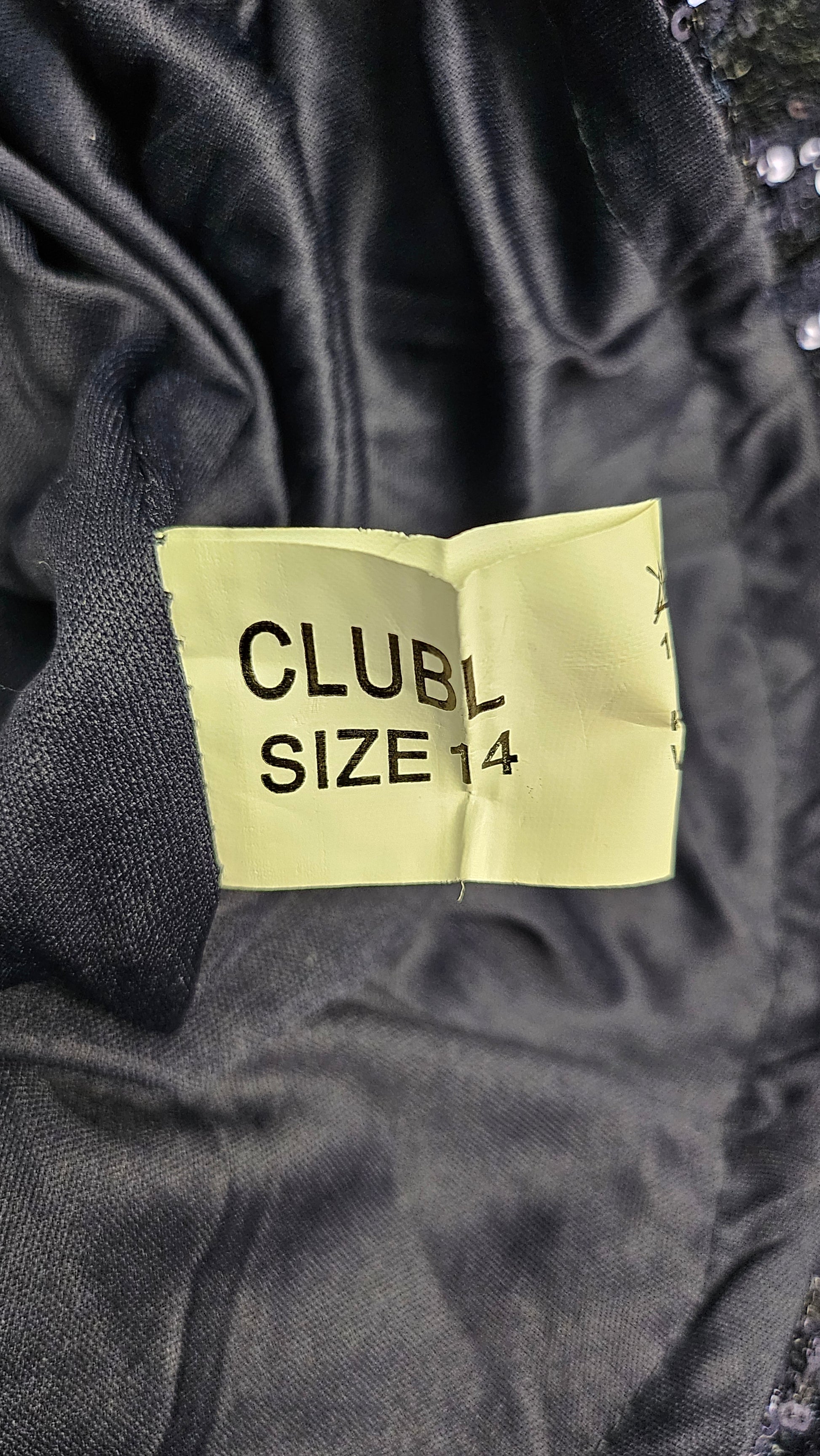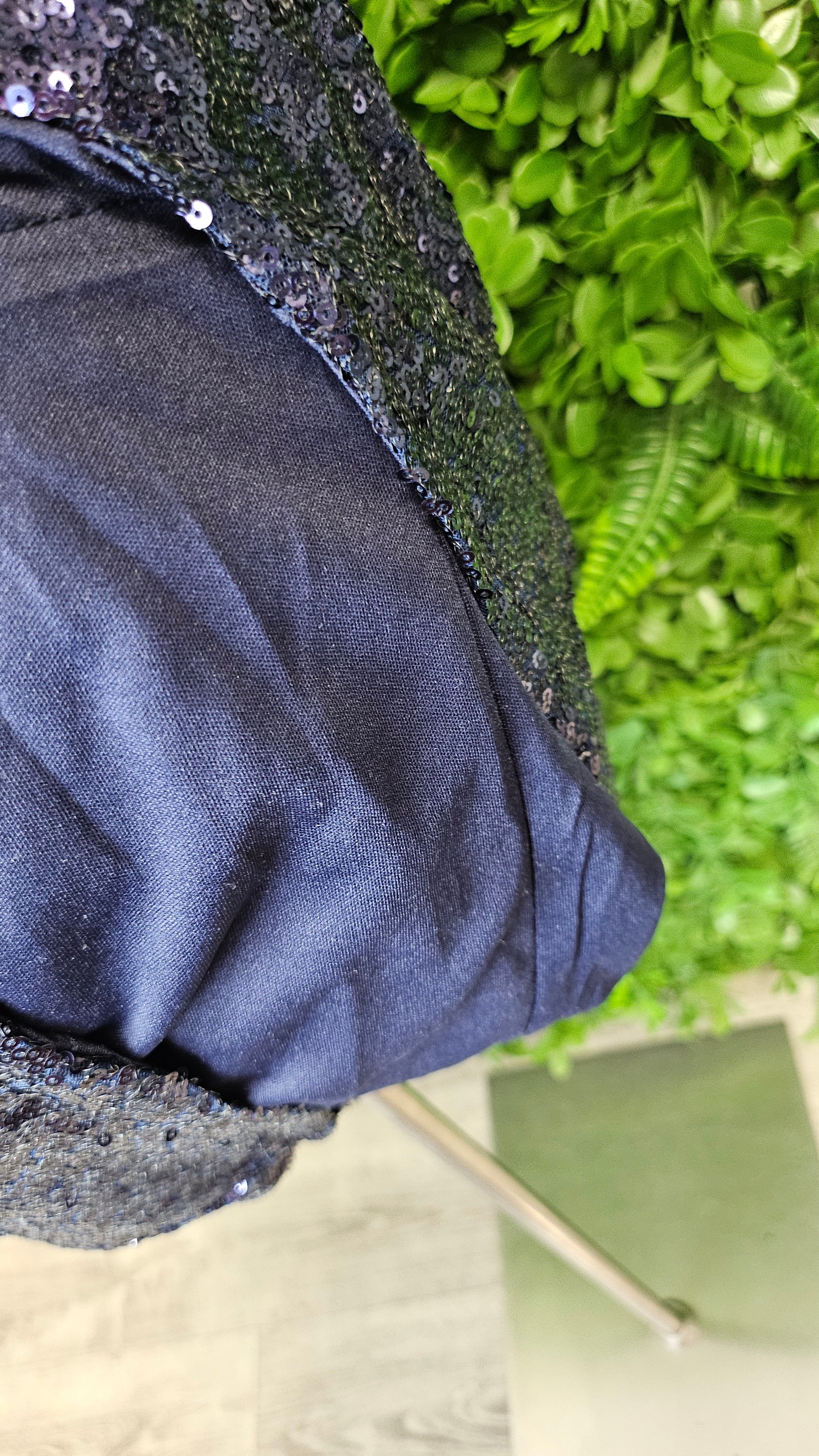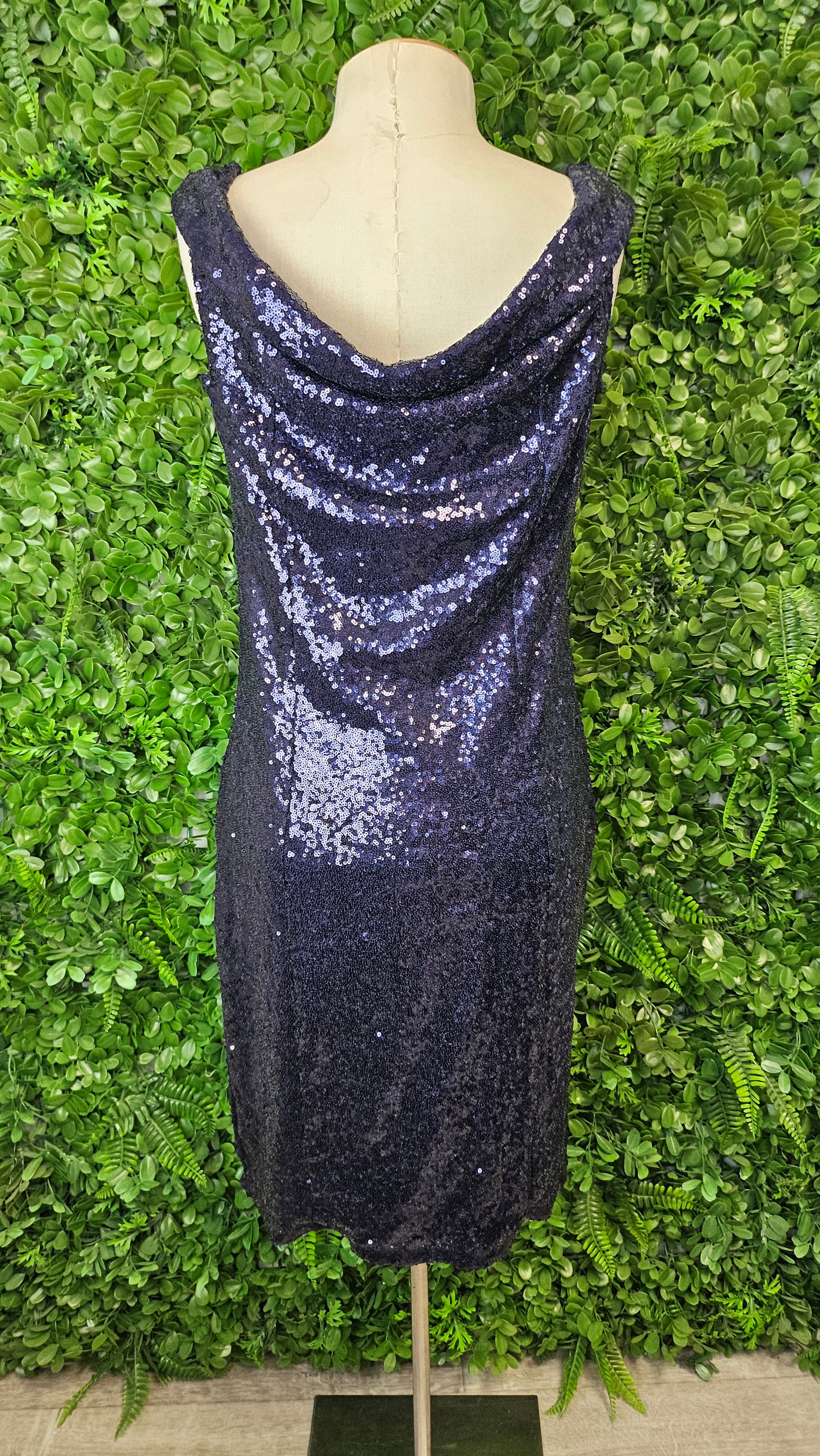 Stunning full sequin party dress with some stretch, off or on the shoulder folded neckline, side zip .
