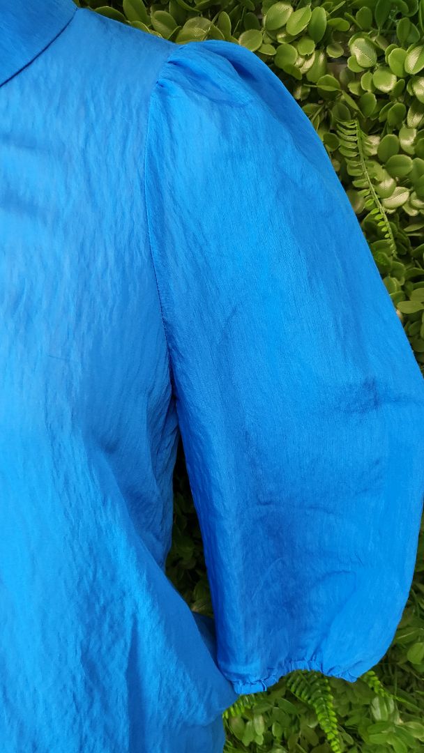 Tencel blouse with button down front, collar and 3/4 puff sleeves with elasticated cuffs.