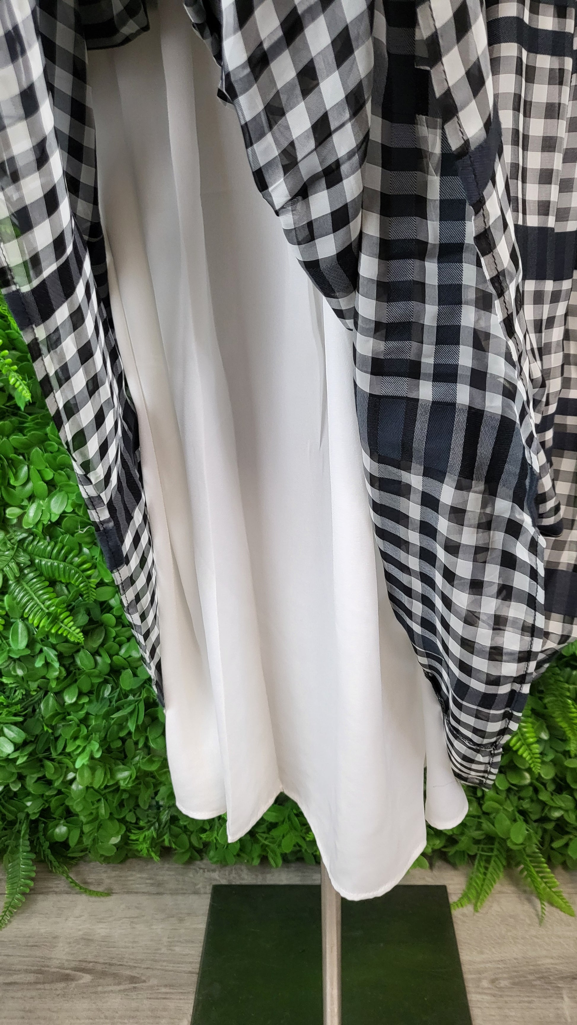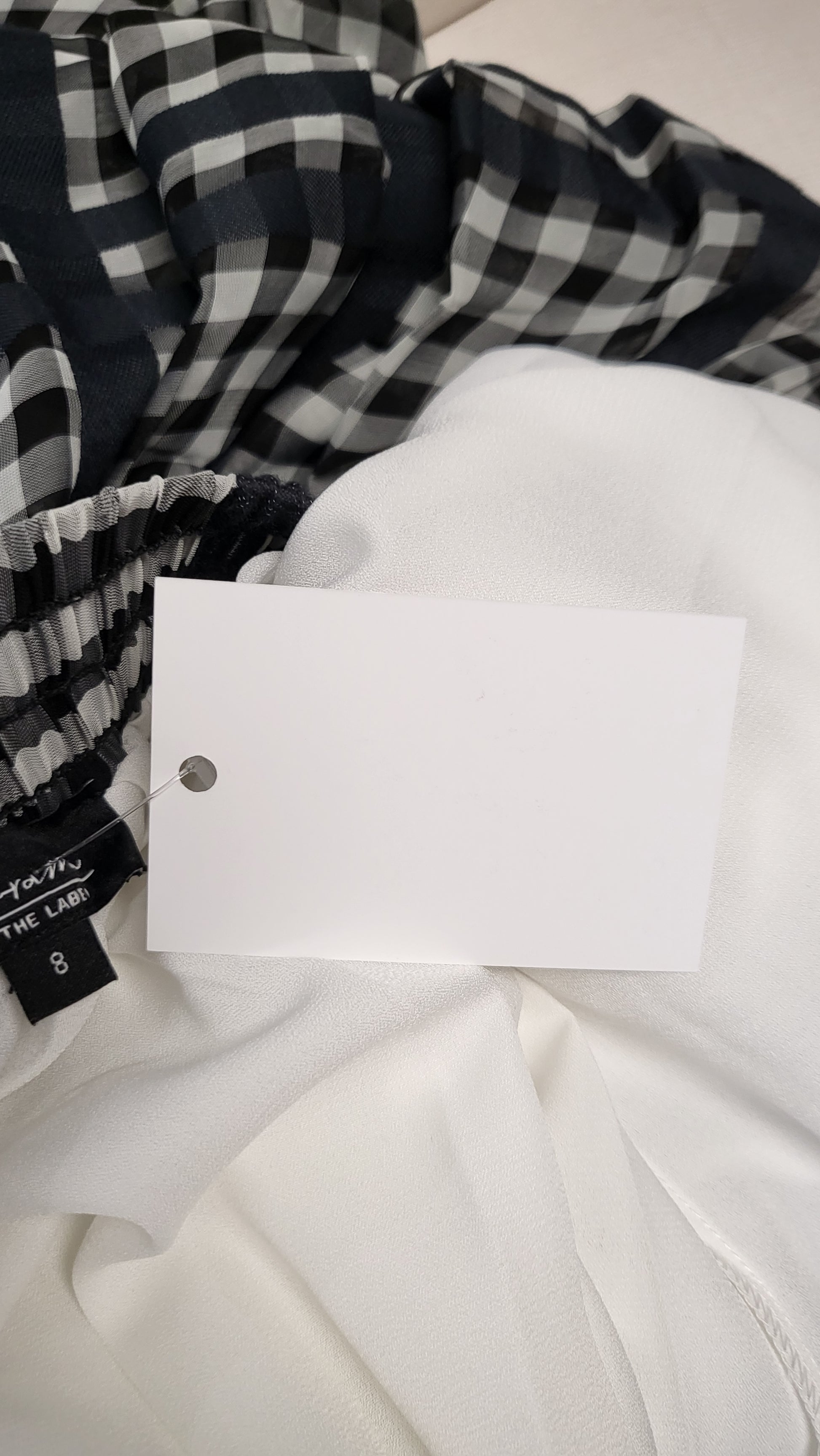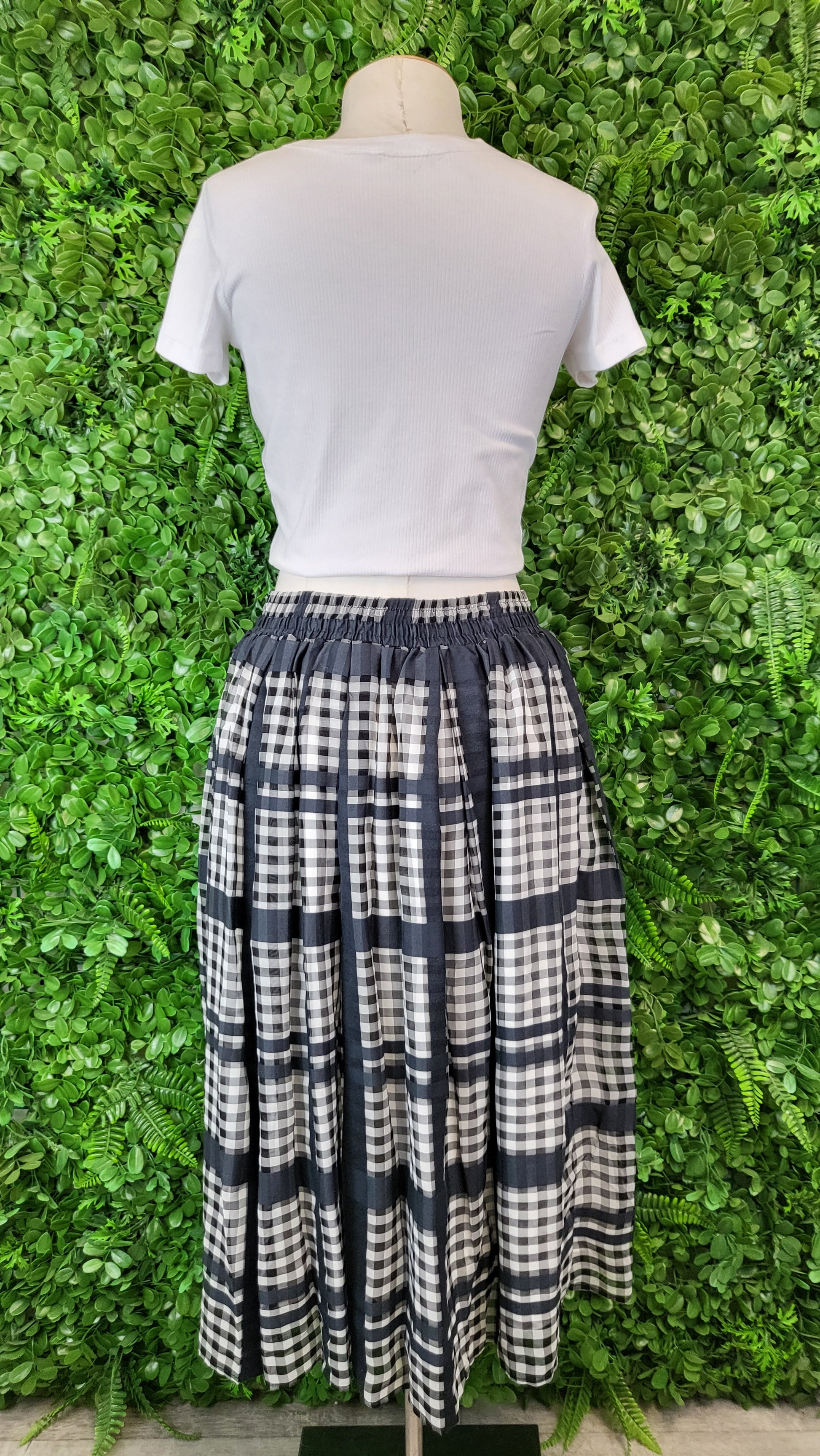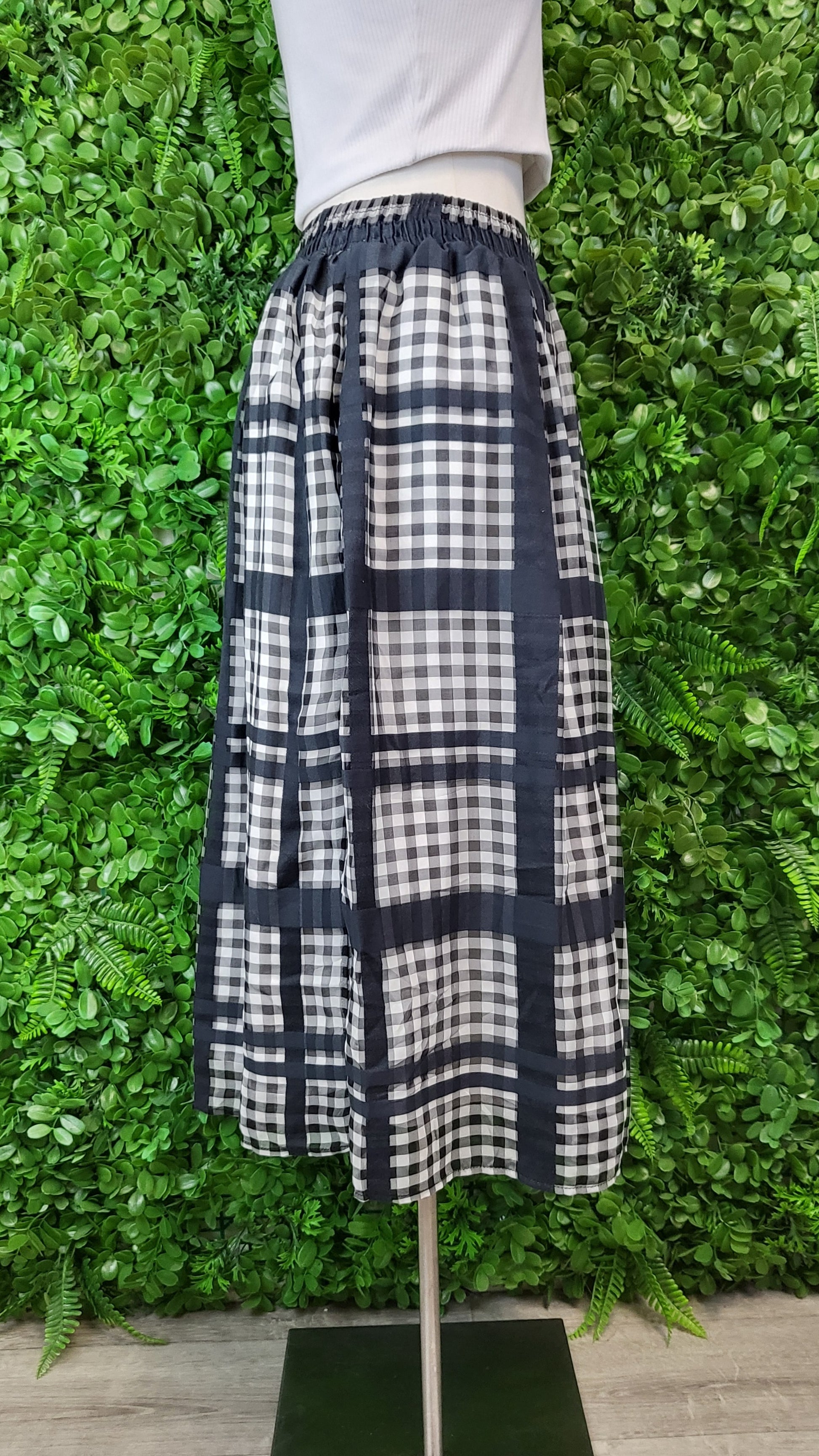 Gathered skirt in the window pane print. Elasticated waist. Fully lined,