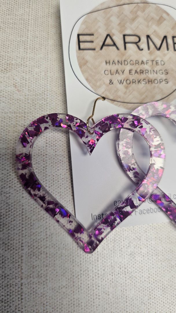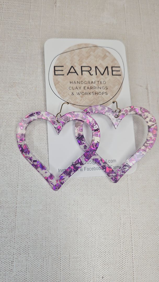Earme Purple Glitter Heart Earring NEW