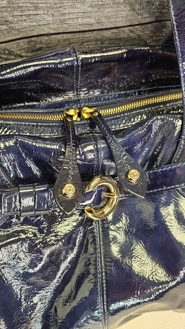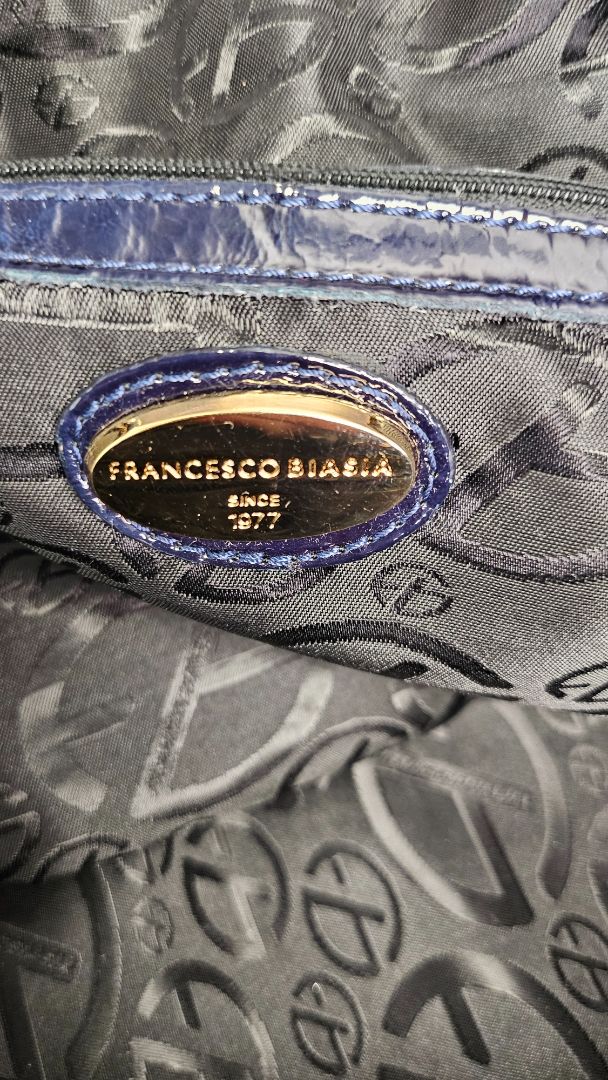 Francesco Biasia Navy Patent Leather Bag (37cmx30x13cm)
