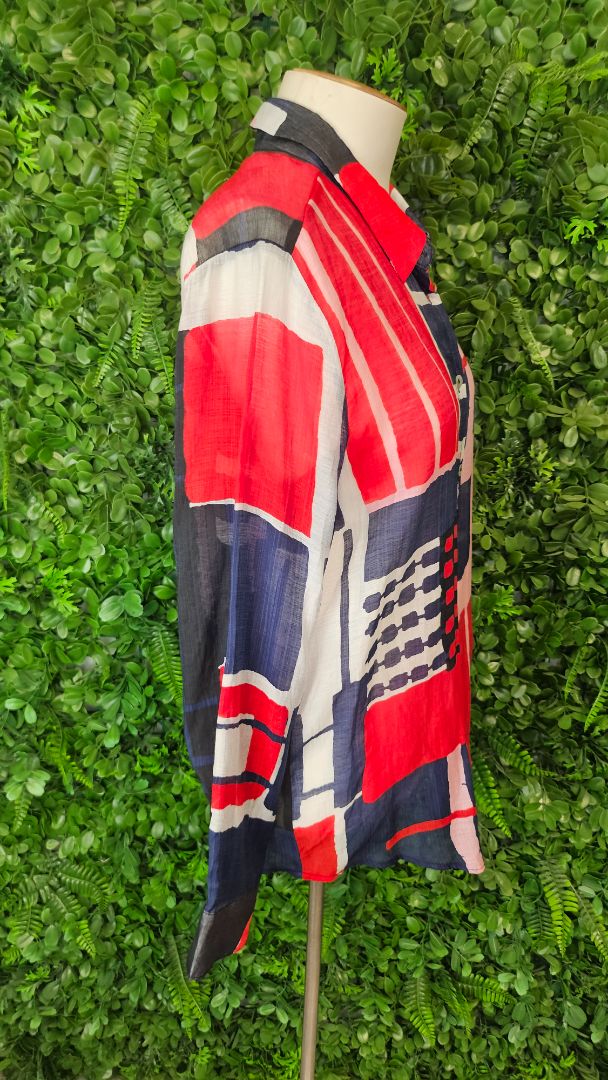 Viscose print shirt with shell buttons.