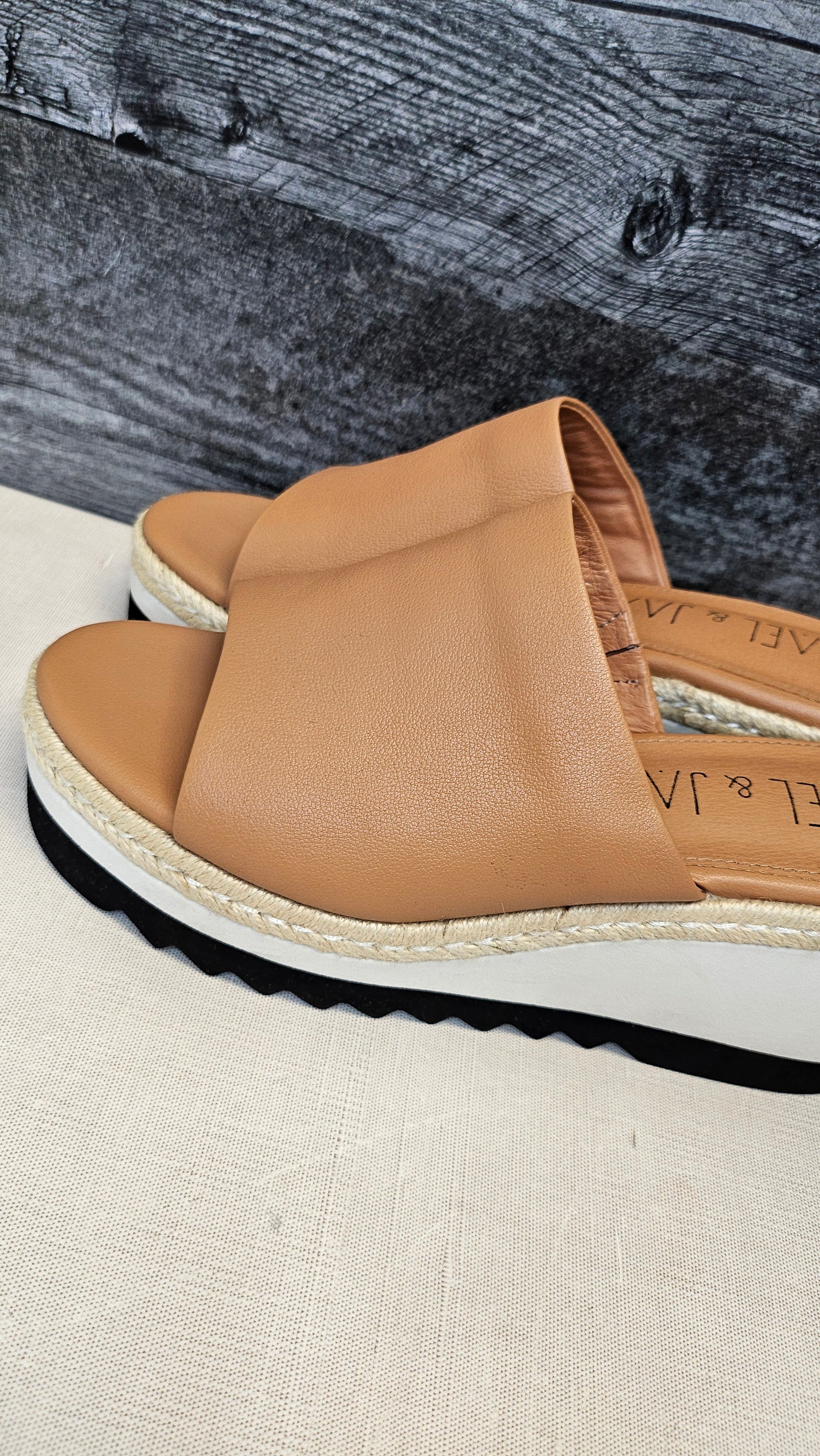 Hael & Jax Tan Wedge Leather Sandal (39)