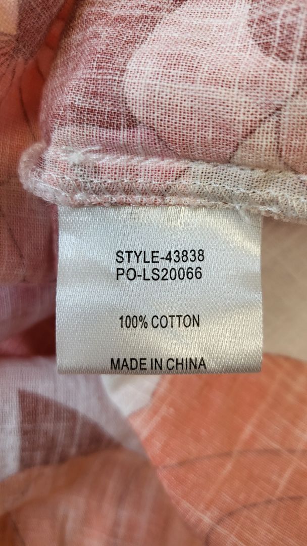 Big floral dress on a white background. Crossover bodice front with tiered skirt. 100% cotton