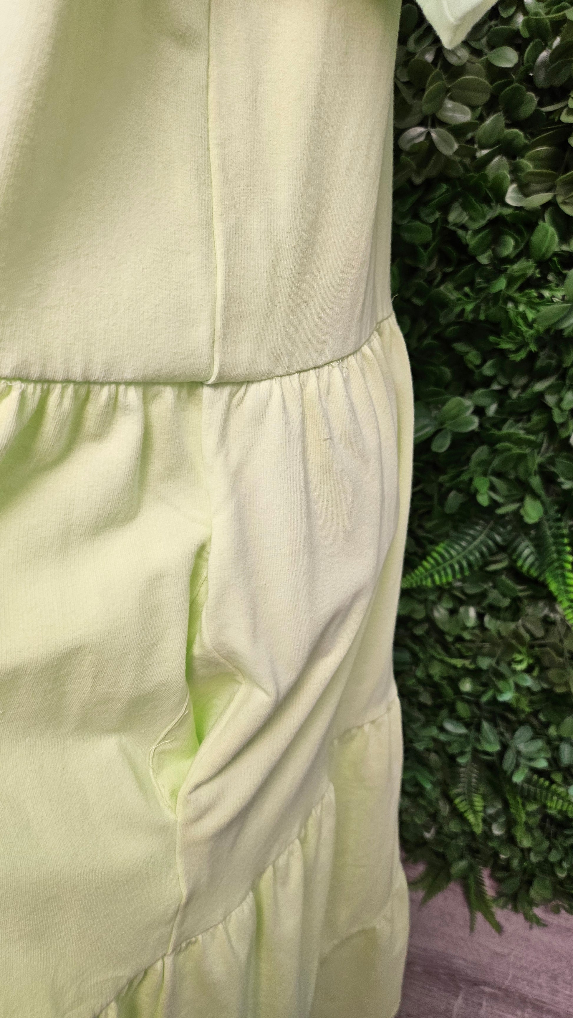 T-shirt dress with side pockets and a tiered skirt, fabric dress.