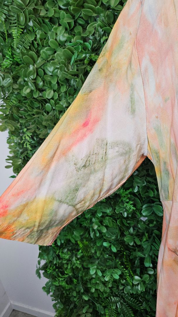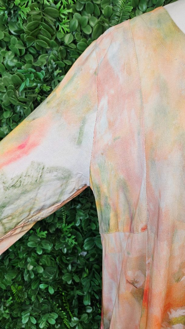Floral Fleur dress by Jellicoe. Elegant and timeless, pretty and feminine. Shaping seams under the bustline that relaxes to the hem. Gathers thru the back. Gorgeous muted floral print on a watercolour backround.