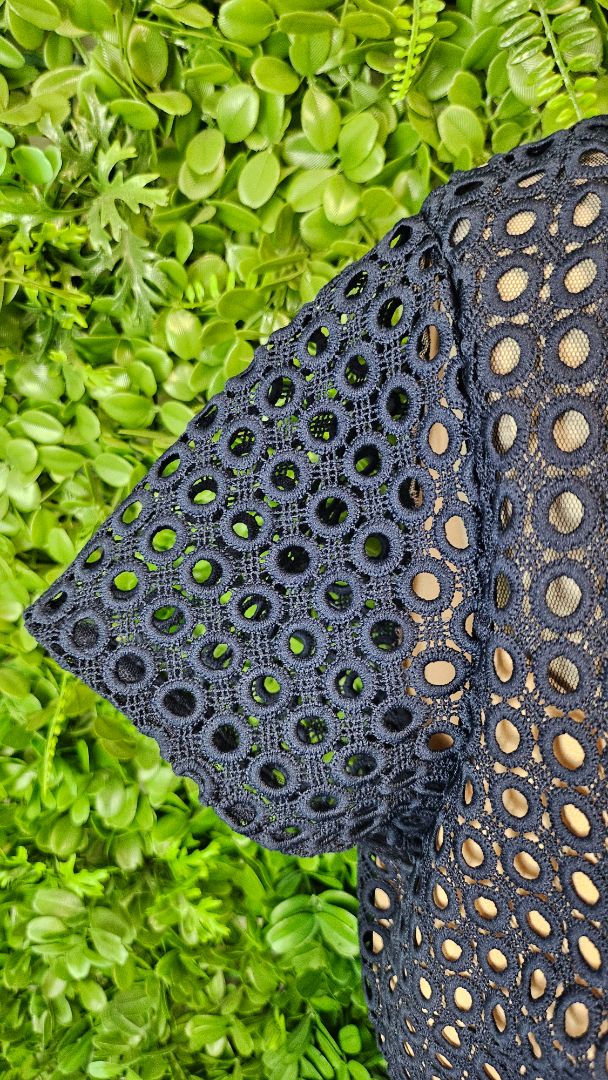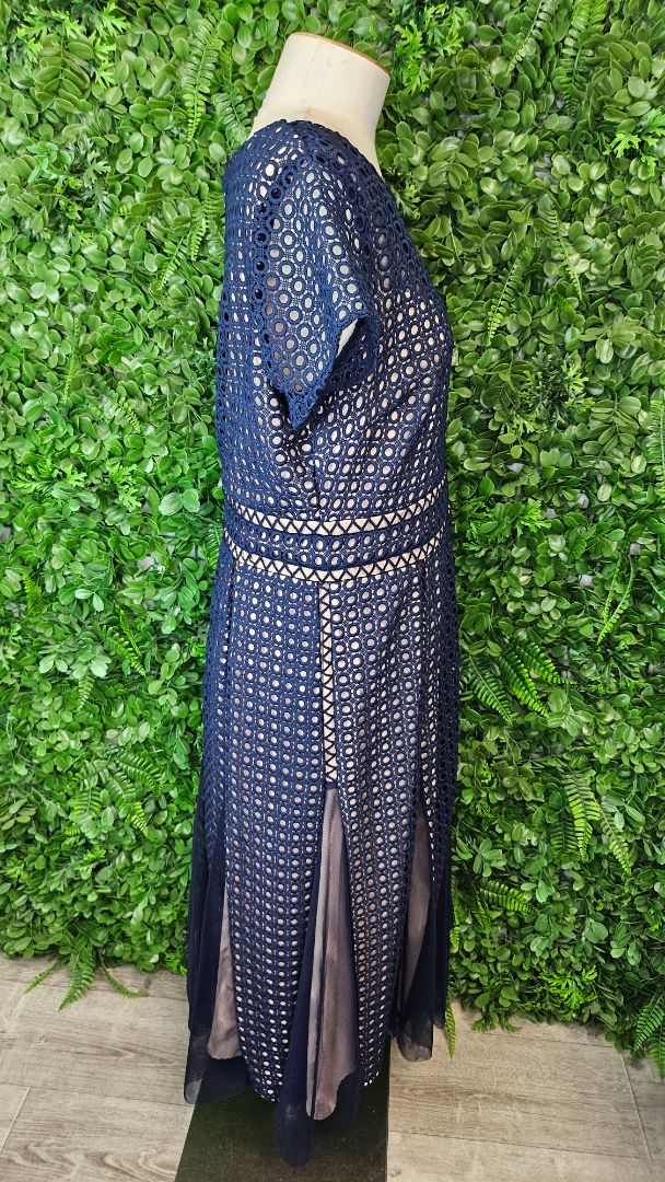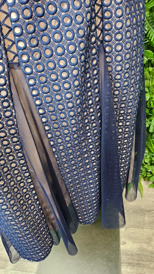 Joseph Ribkoff Navy Giupure Mesh Fit Flare Dress (14)