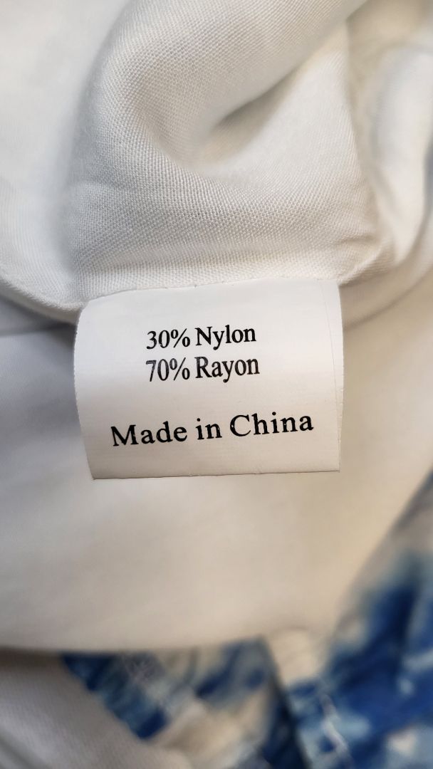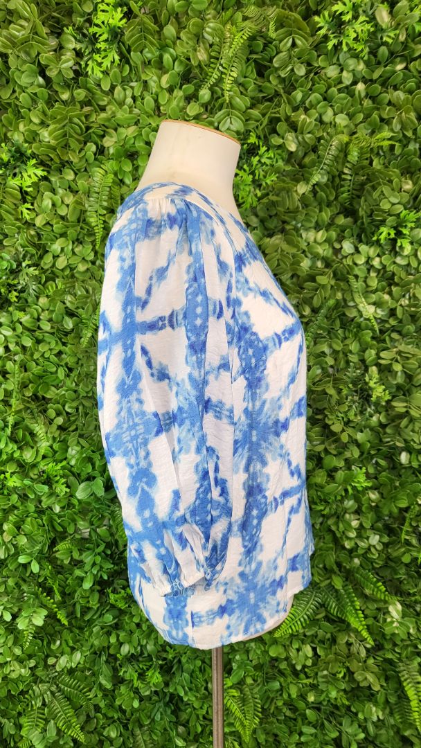 Fully lined top with puff sleeves in a water colour print with back tie, double lined.
