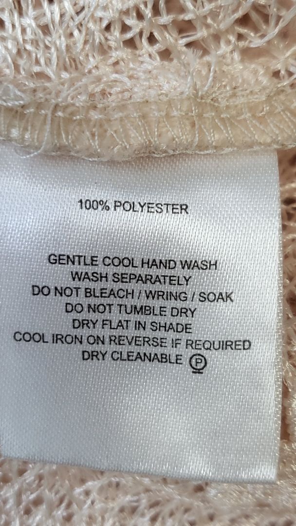 Textured fabric top with lace detail on hem and 3/4 sleeve cuffs.