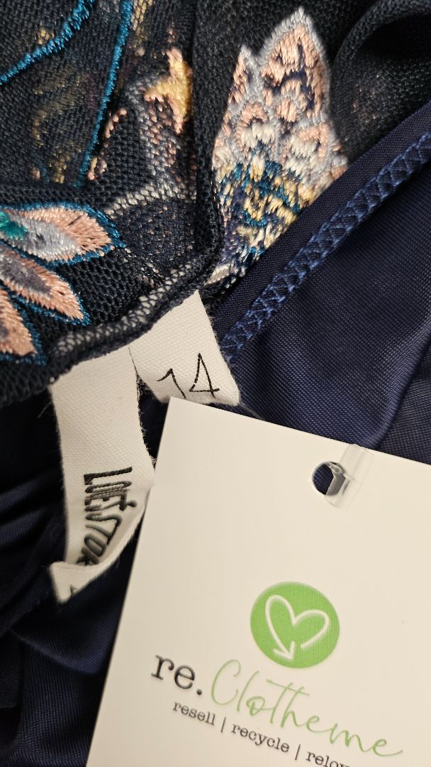 Wrap mesh dress with floral embriodery, stretch under slip with ribbon strap.