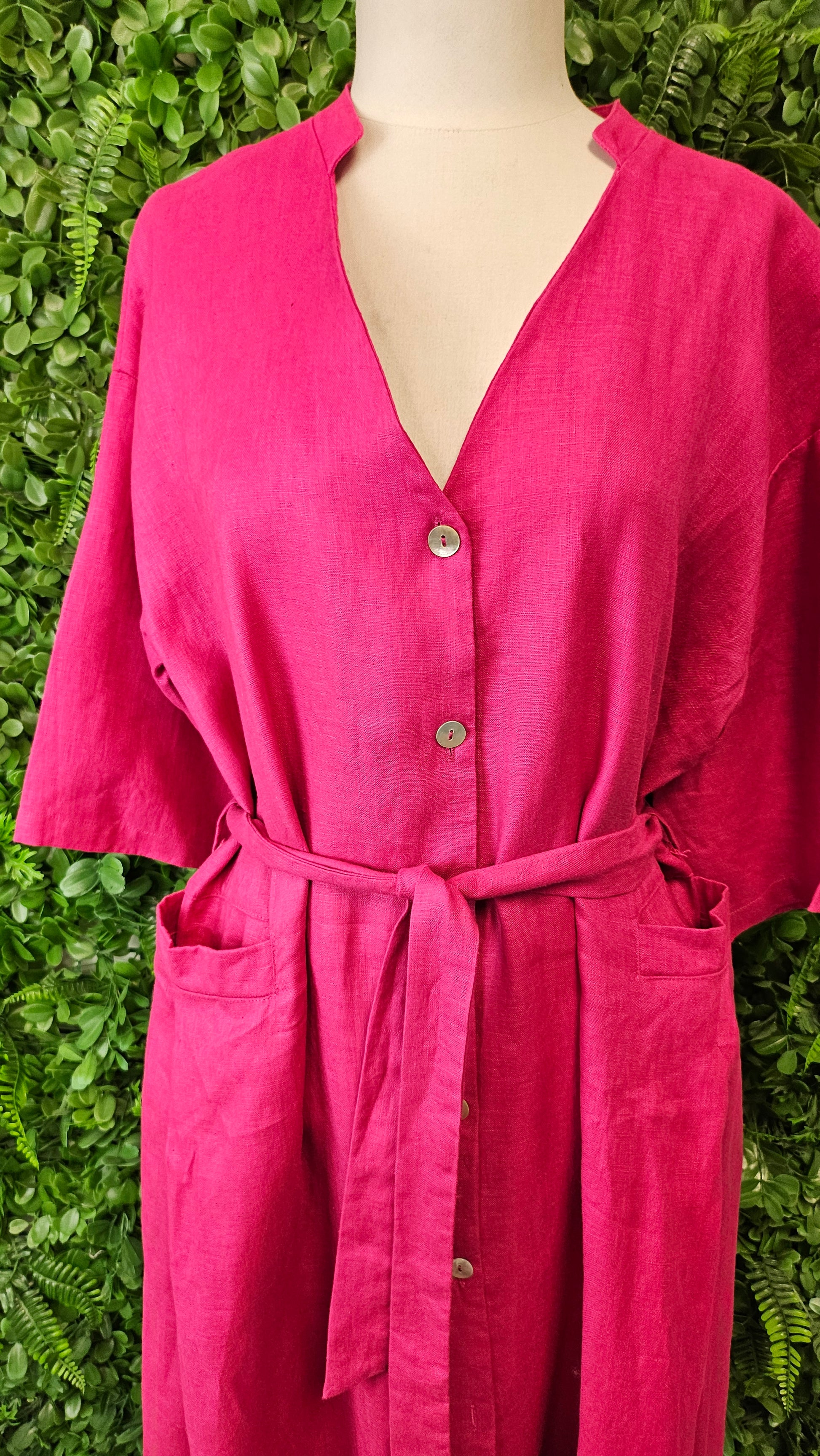Lordship Linens Fuschia Pink Linen Dress (12-14)