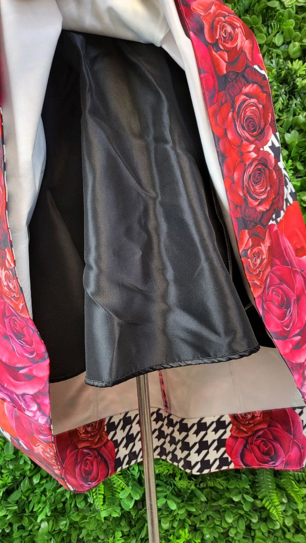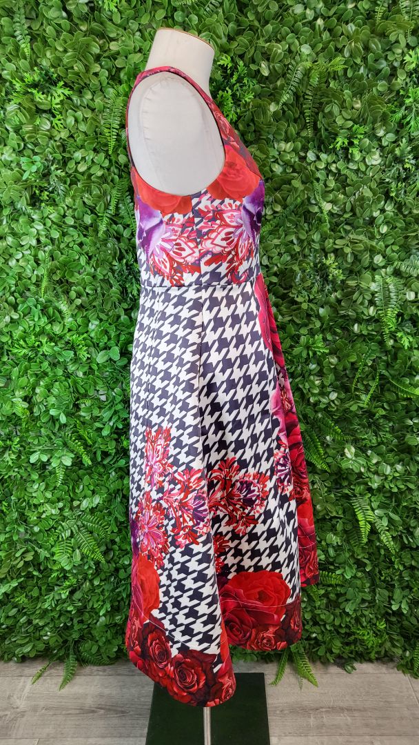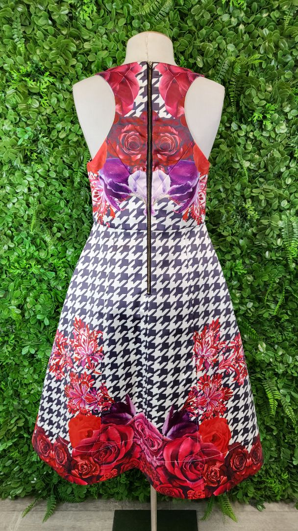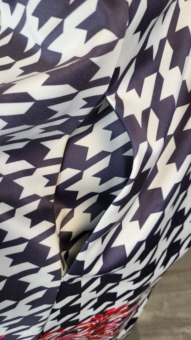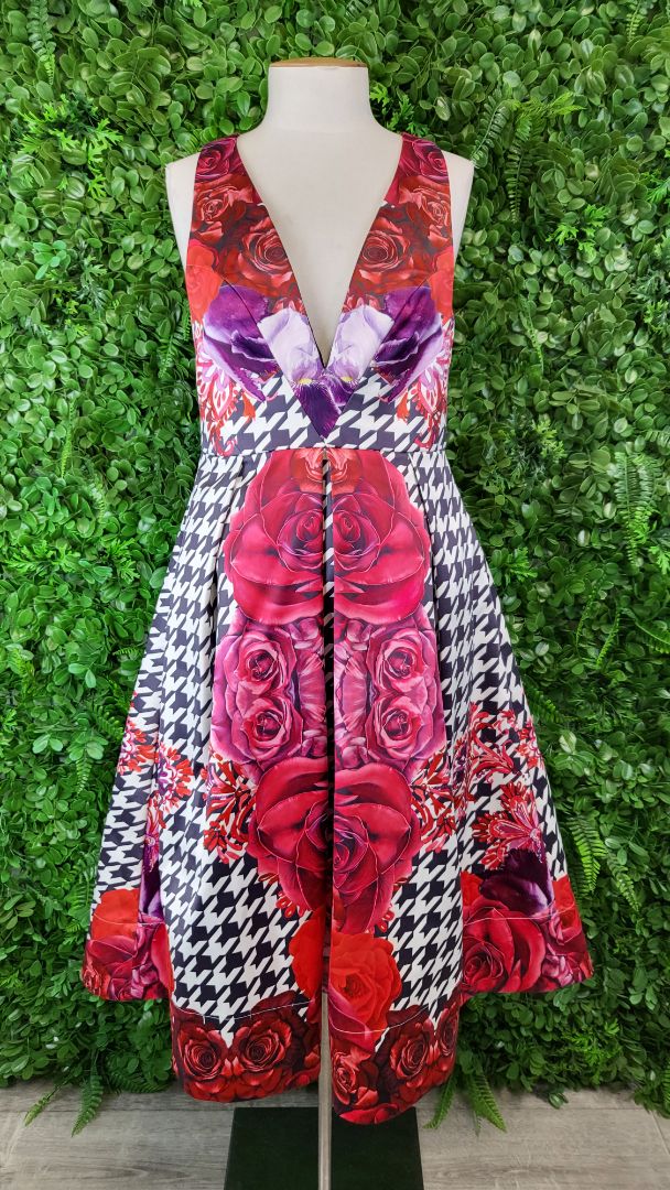 Deep v-neckline with a fitted waist with large pleat down center skirt, side pockets and fully lined, this is the perfect dress for up events.