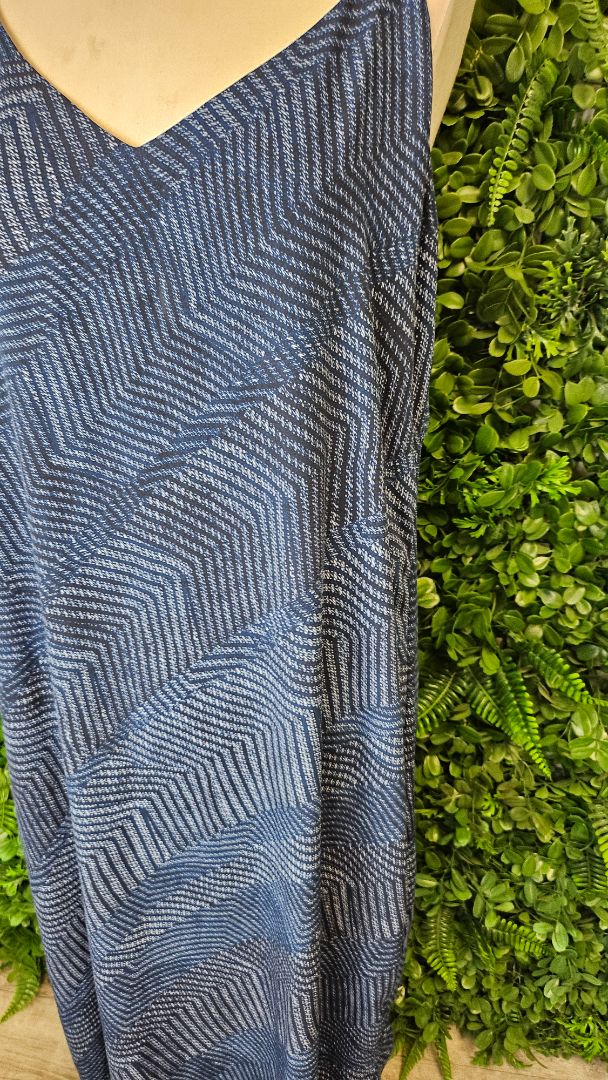 Sundress midi dress with adjustable straps and v neckline front and back. Lined.
