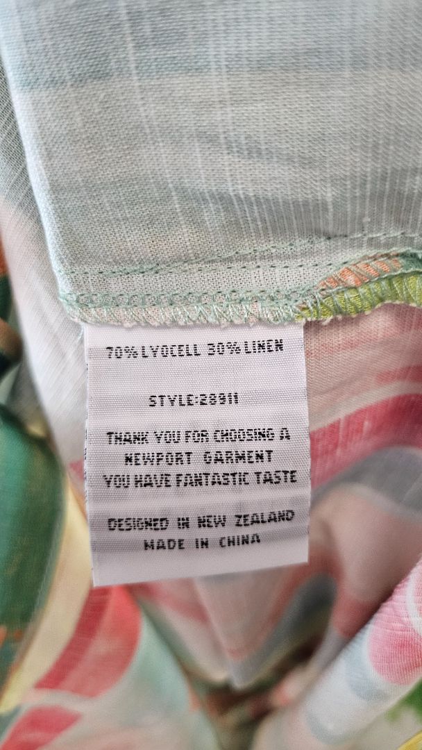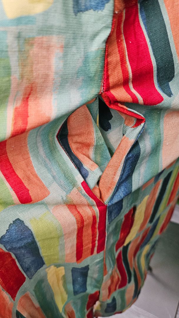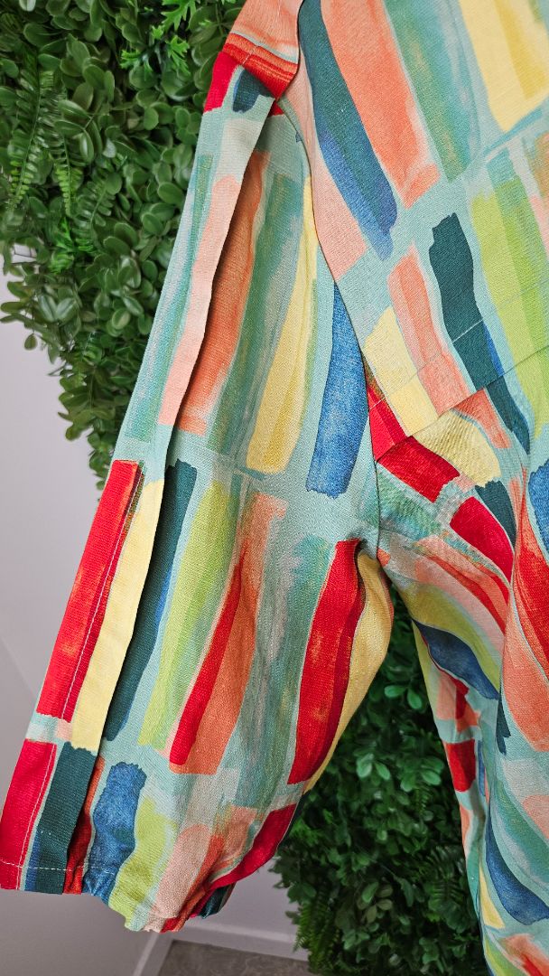 Linen blend dress with button down front, waist belt, elasticated cuffs, side splits.