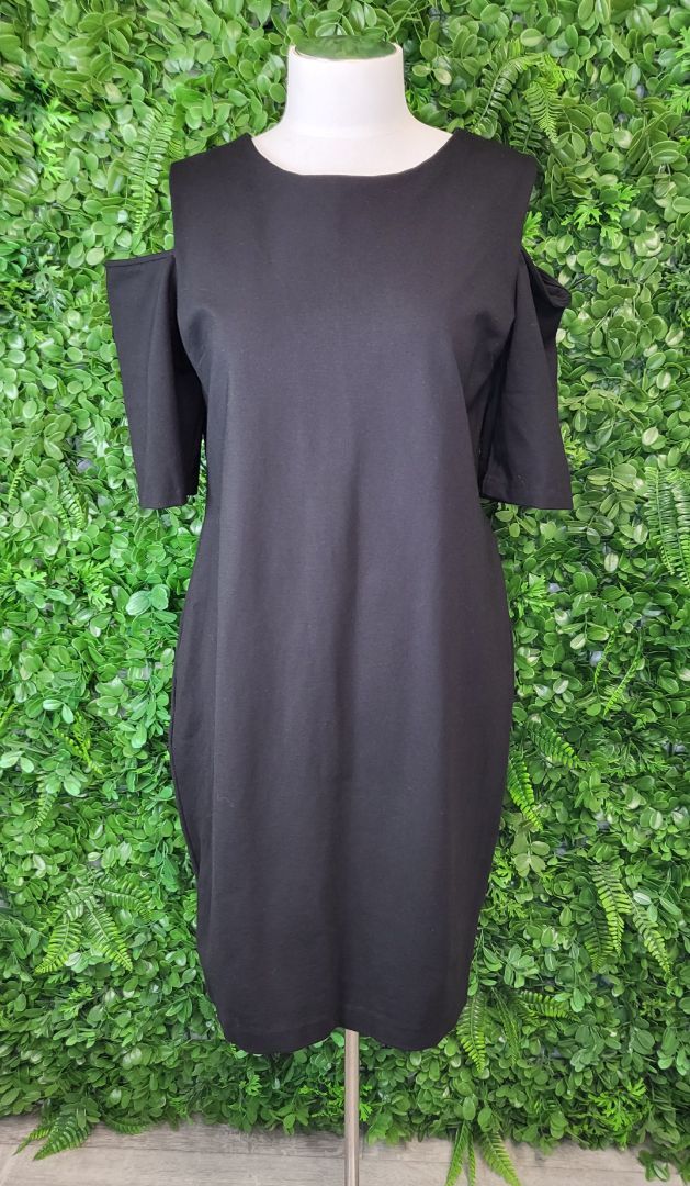 Paula Ryan Black Cold Shoulder Roma Tube Dress (14-16)