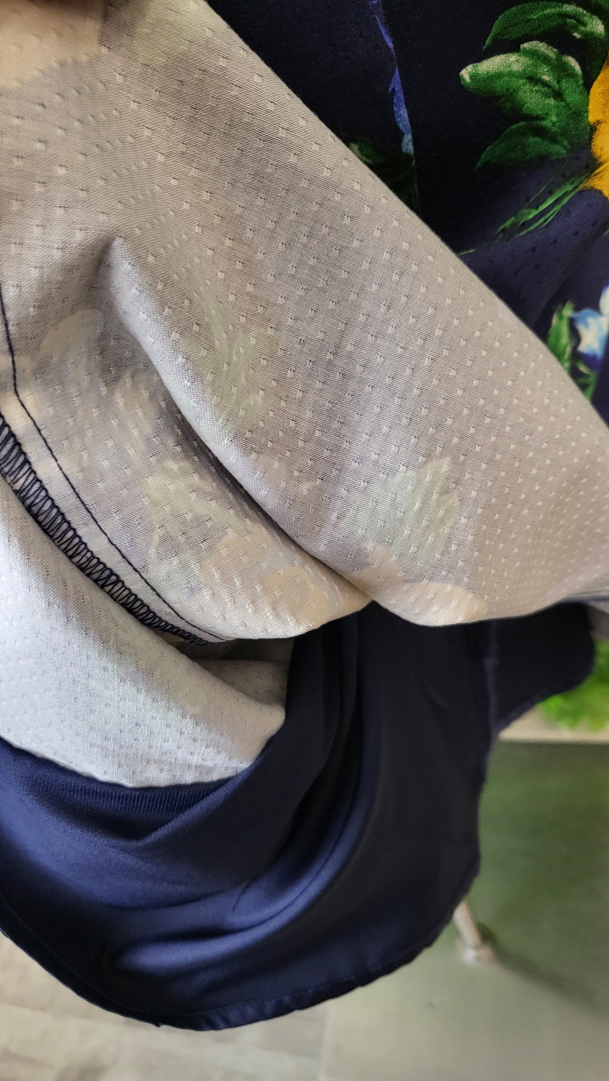Fully lined fit & flare shirt dress with a fake button down front collared neckline, 3/4 sleeves with a folded cuff on sleeve.