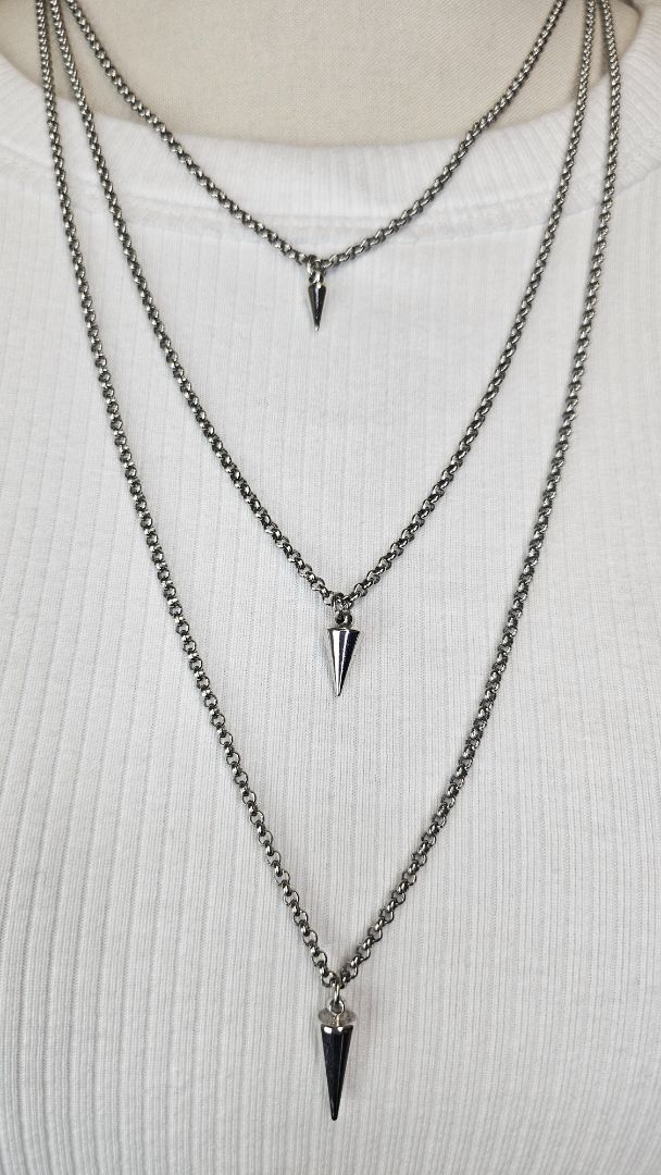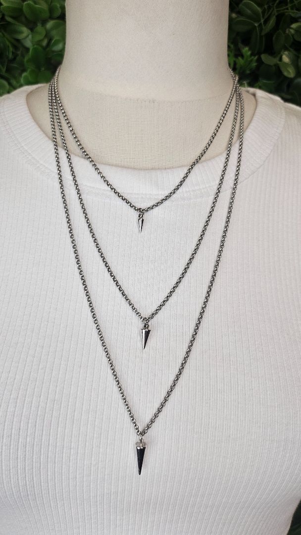 Layered necklace in silver stainless steel, this bold statement necklace will ascend any outfit.