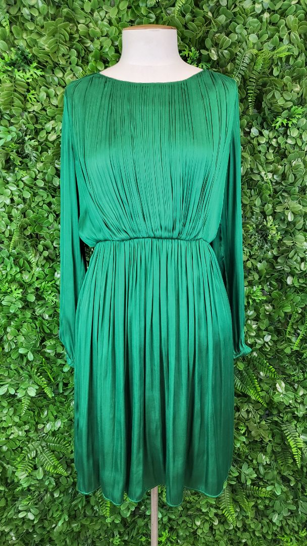 Silky feel pleated dress with elasticated waist, cuffs and fully lined.