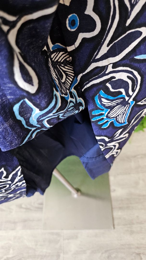 Navy based floral sundress, sleeveless with double drawcord waist. Lined
