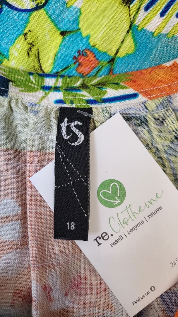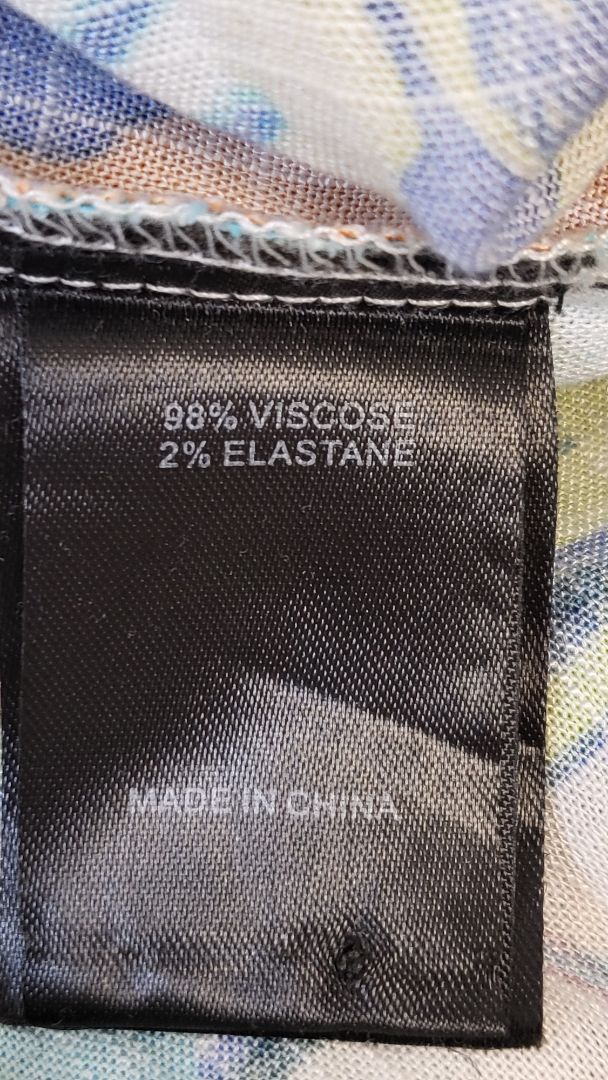 Viscose/elastane top in fun bright colours with print. Button down with tassel tie at neck