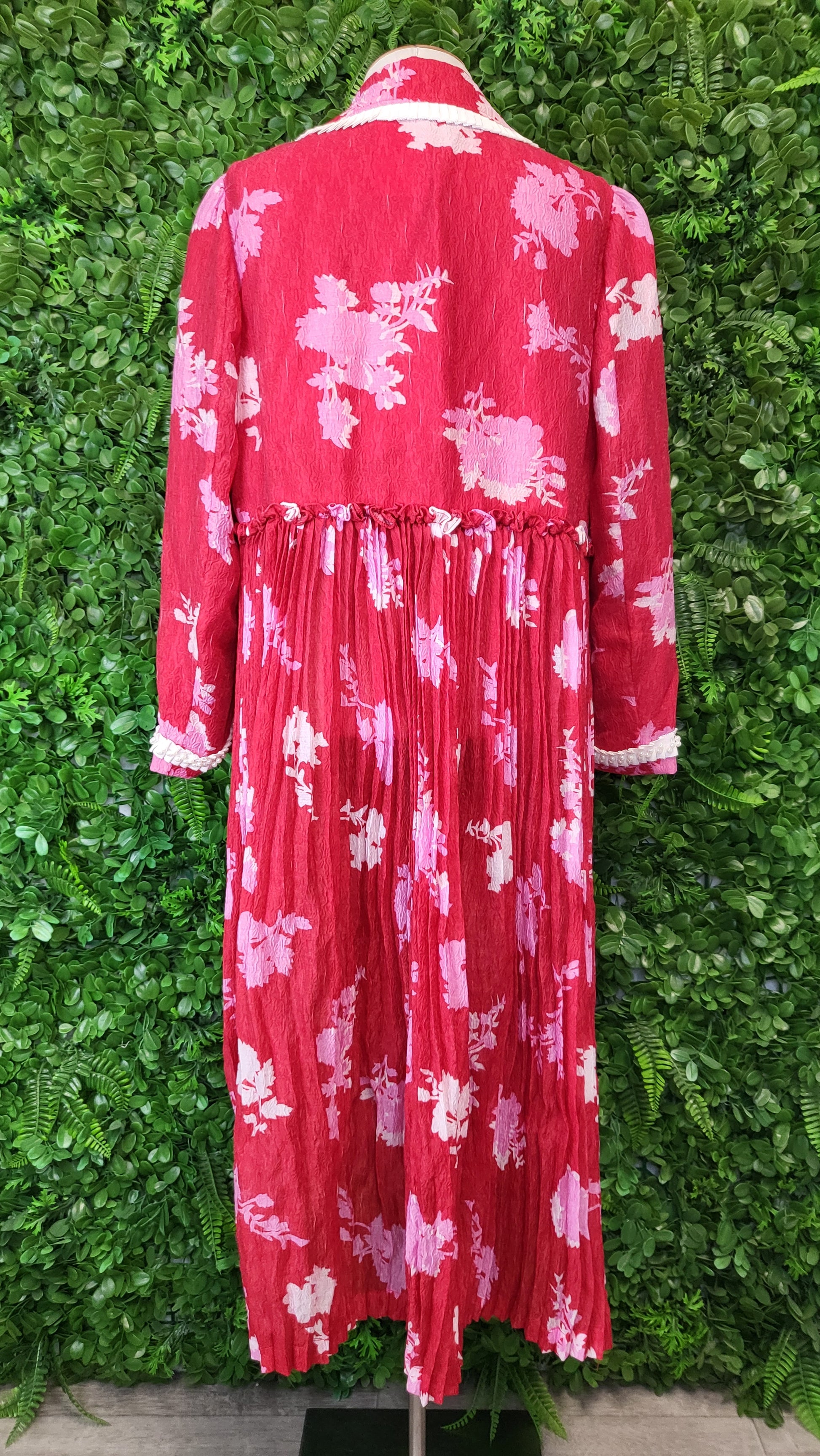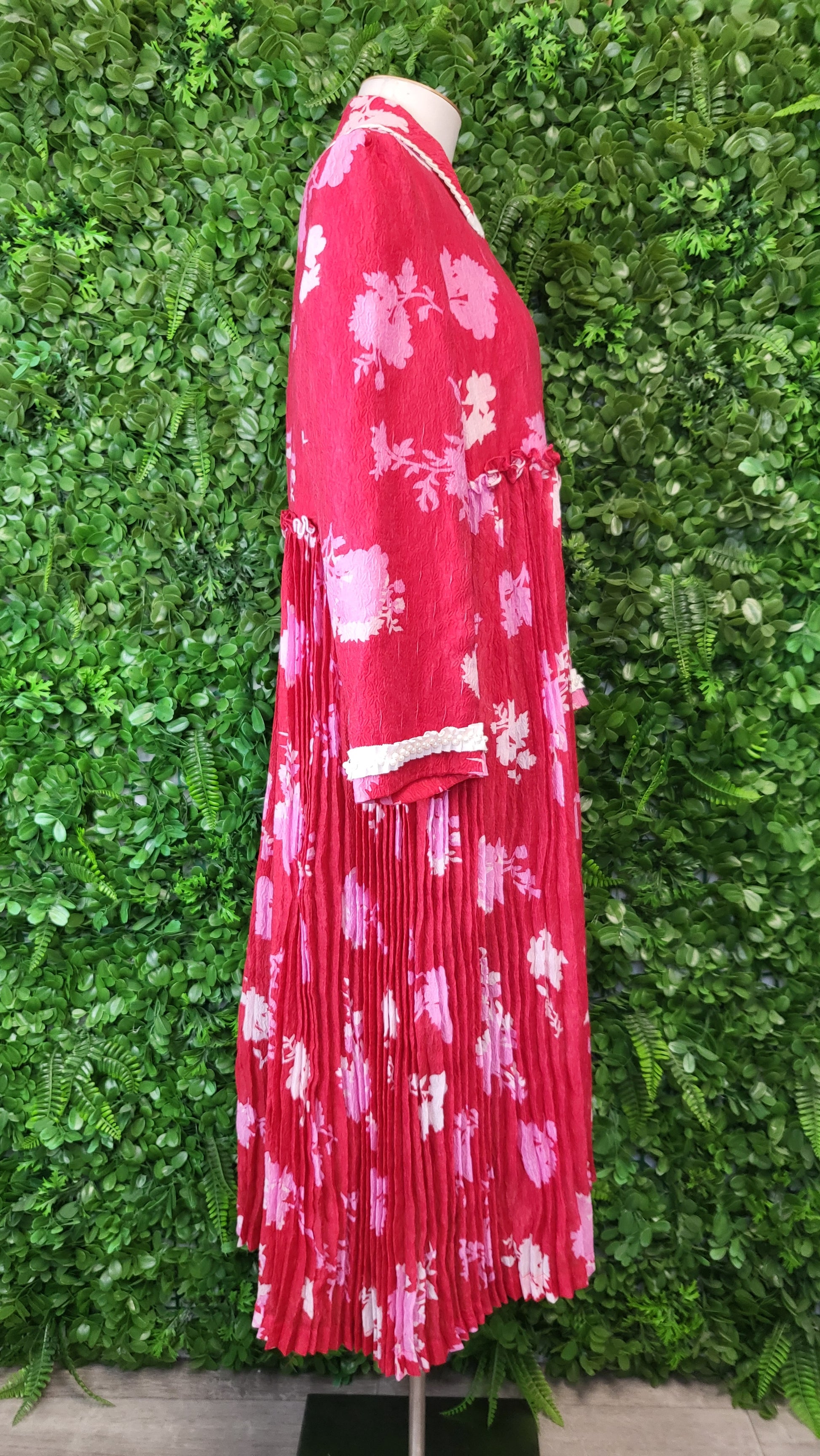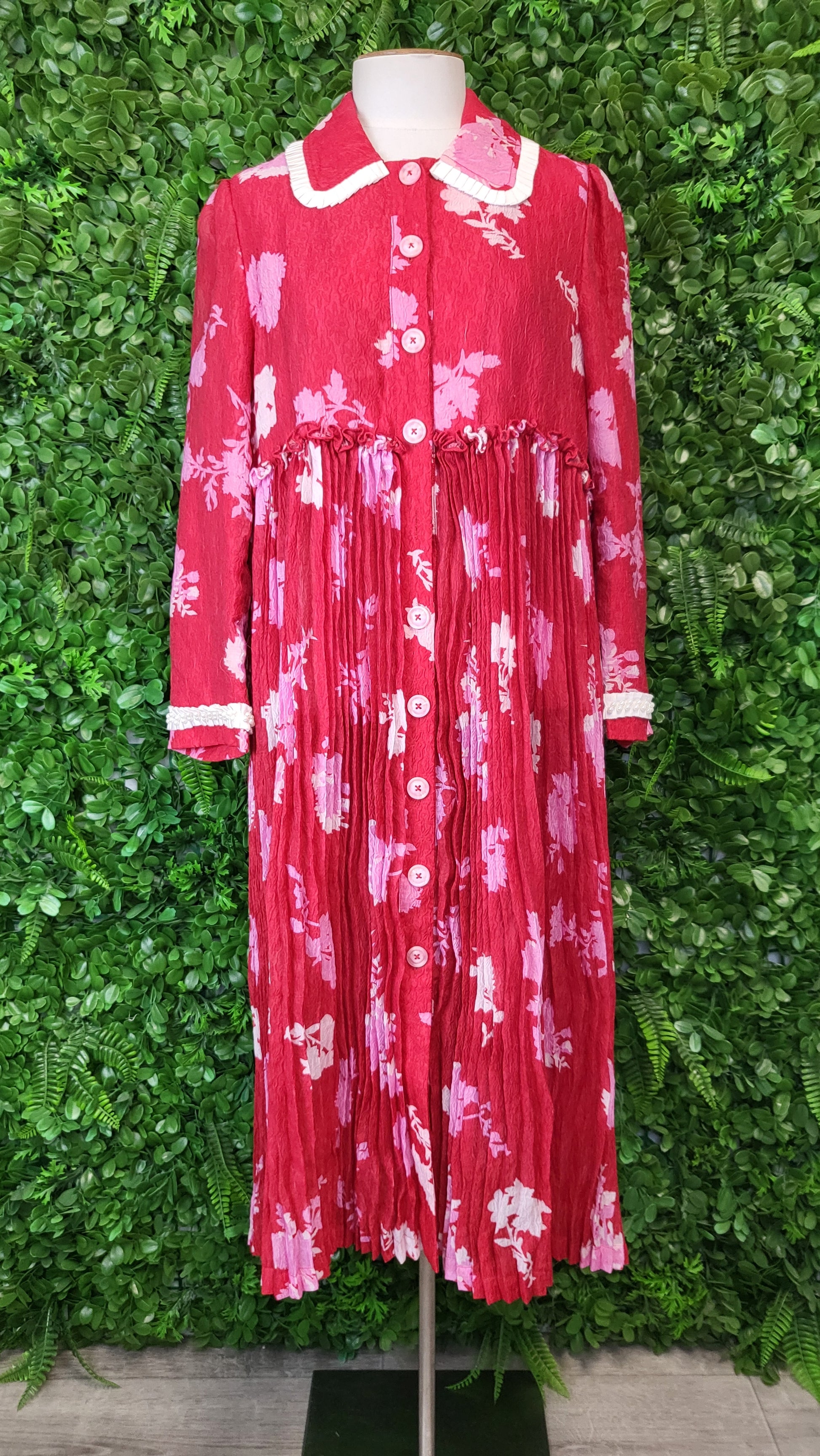 Designed in Blooming lovely printed fabric, this button through shirt dres features stunning pearl detailing on the cuffs and collar, can be worn buttoned or open as a coat. Generous fit