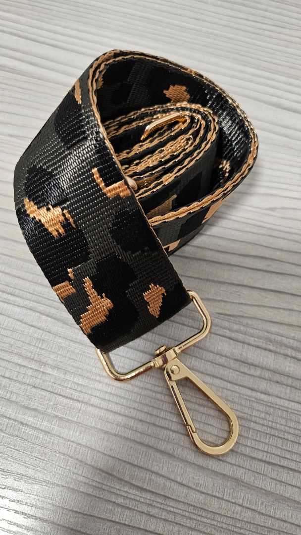 Grey animal print bag strap with gold hardware